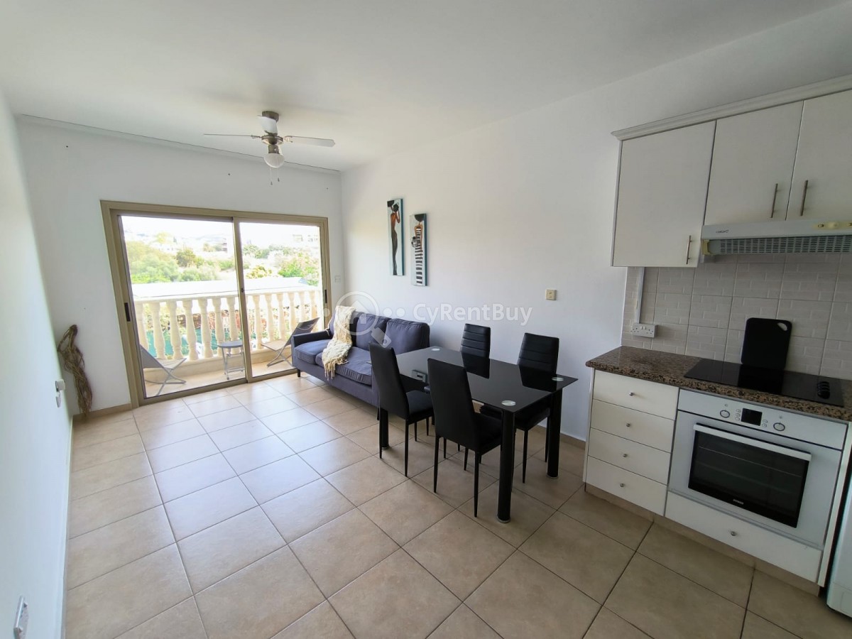 Disponible para alquiler, este cuidado apartamento de 1,5 dormitorios se encuentra en un complejo residencial con piscina comunitaria, en la demandada zona de Geroskipou, cerca de Pafos.