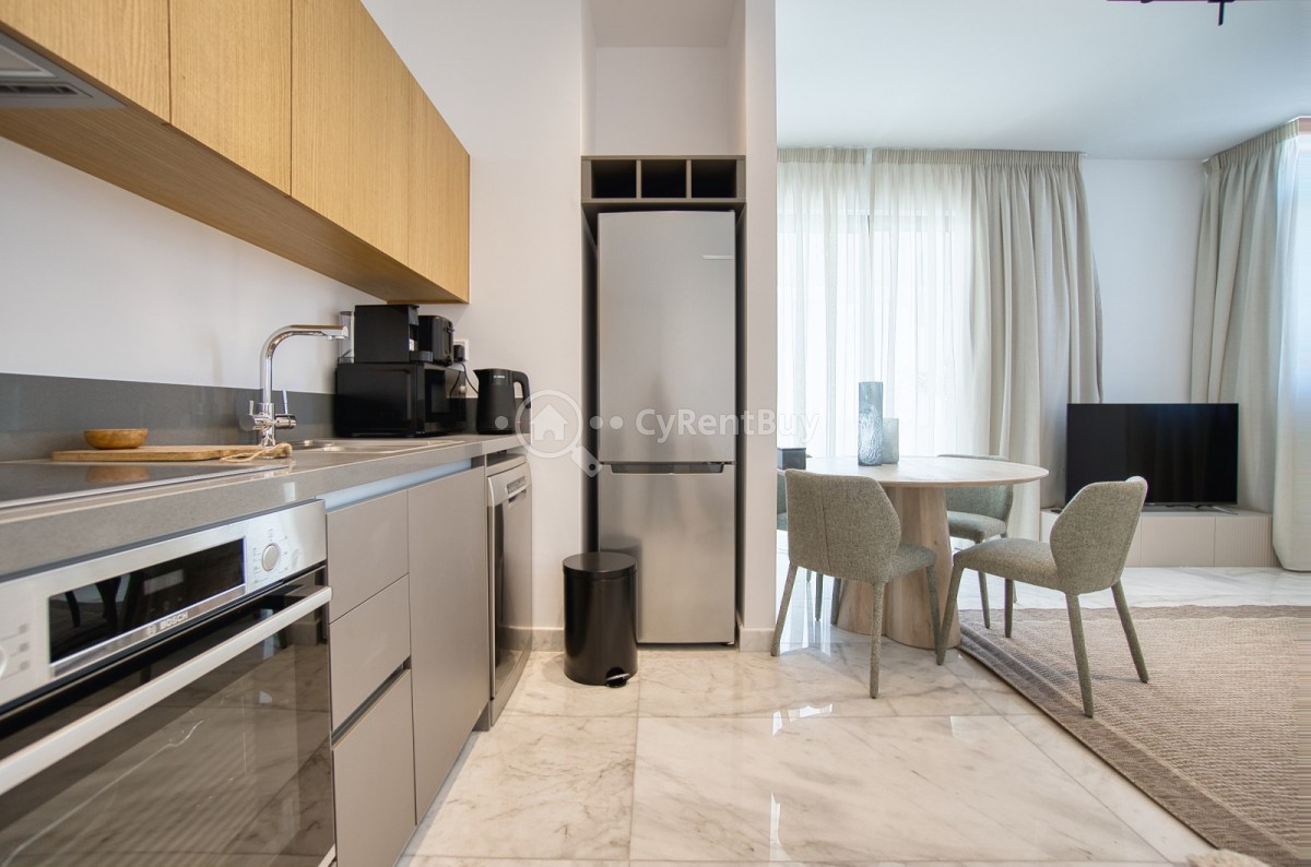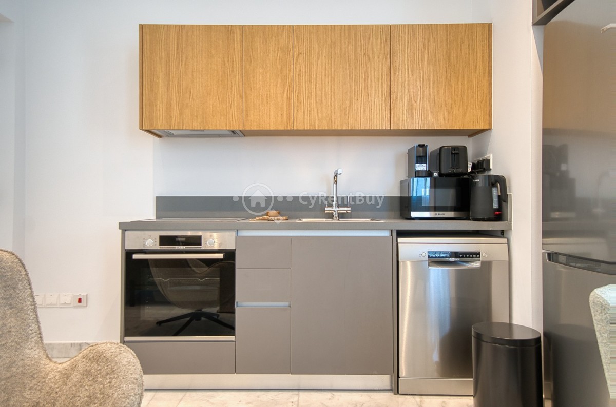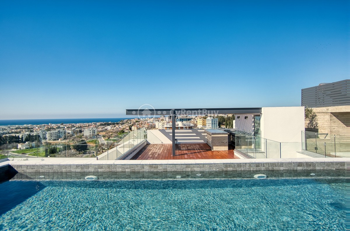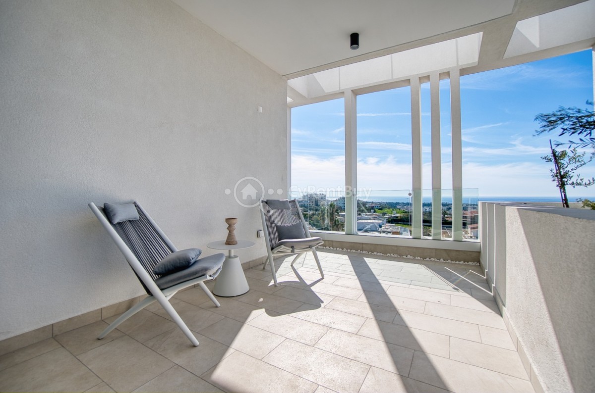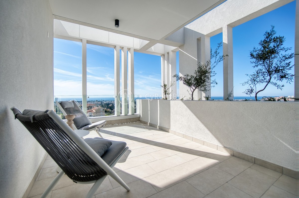 Disfruta de impresionantes vistas panorámicas al mar desde una increíble cocina en elegante diseño gris moderno, totalmente equipada con todo lo necesario.