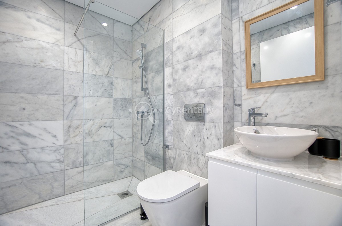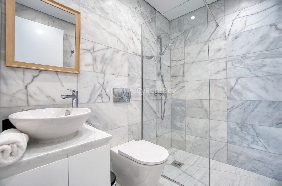 El lujoso baño con diseño de mármol aporta un toque de elegancia, mientras que la espectacular terraza exterior con zona de estar cómoda y los acogedores dormitorios garantizan el máximo confort.