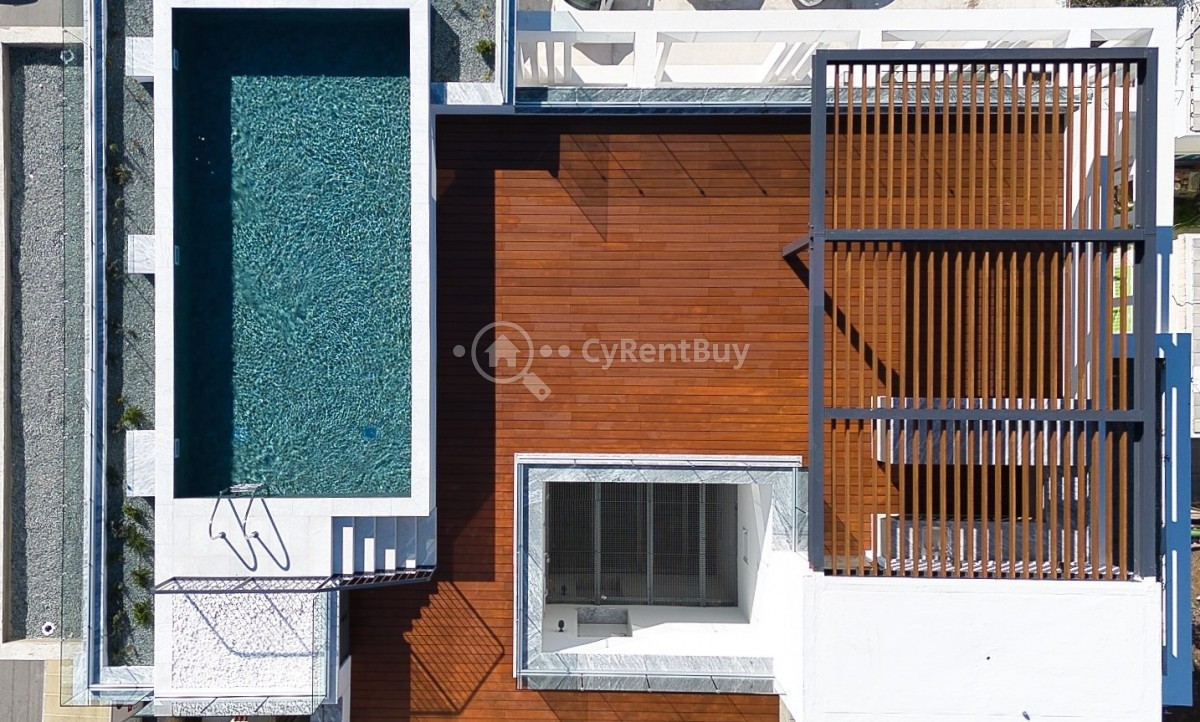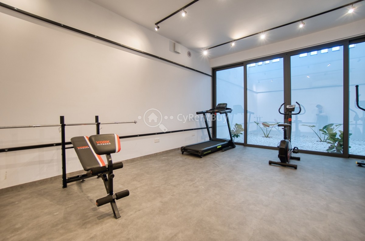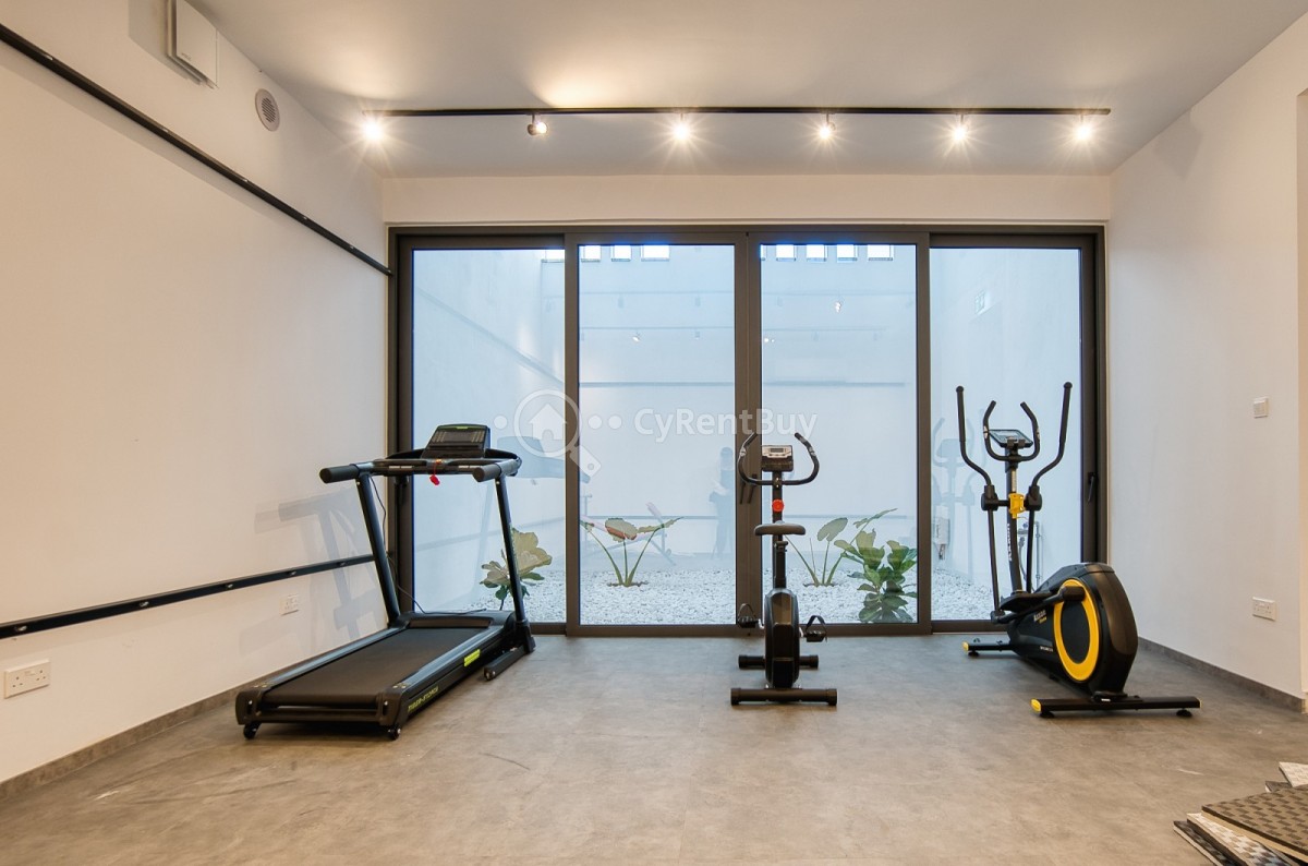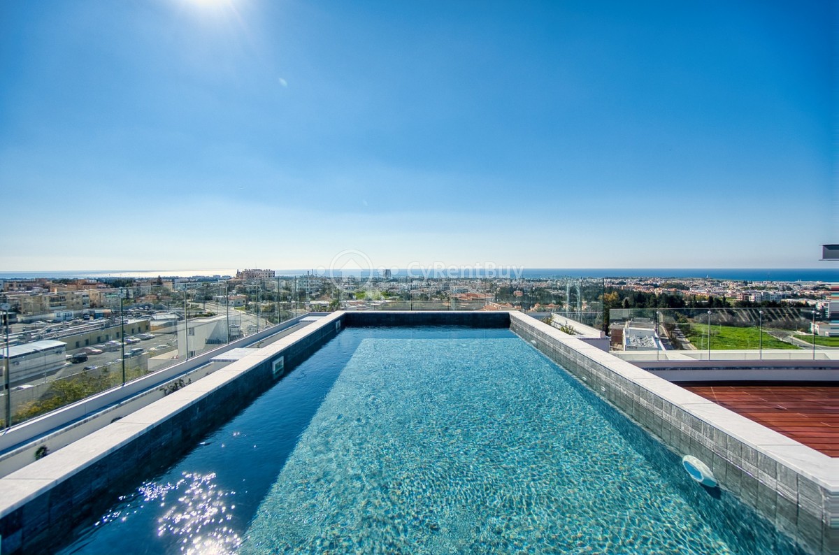 Los residentes disfrutan de un jardín en la azotea con una gran piscina y un gimnasio completamente equipado.