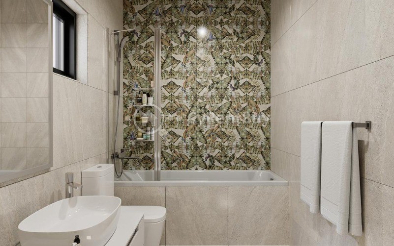 The development is enriched with premium lifestyle amenities, including a large communal swimming pool surrounded by lush landscaped gardens—perfect for relaxation under the Cyprus sun. A fully equipped gym overlooking the pool provides a motivating space for maintaining an active lifestyle.
