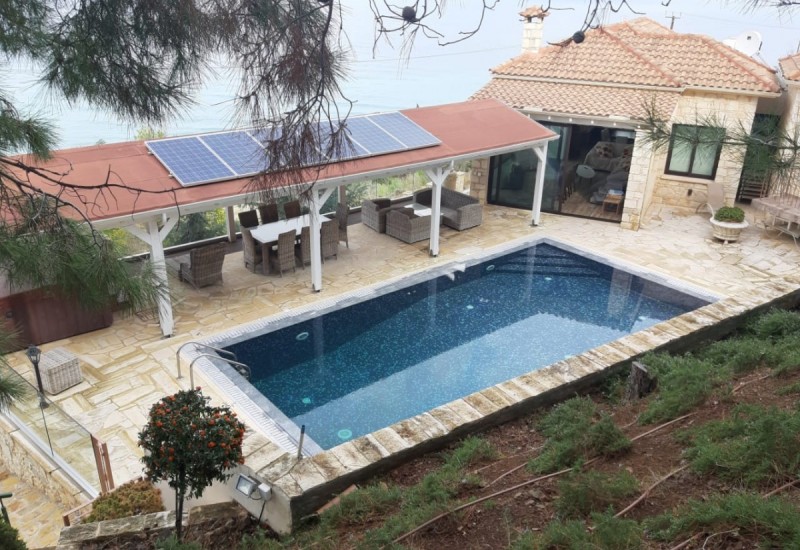 Esta villa excepcional se encuentra en el tranquilo pueblo costero de Pomos, ofreciendo privacidad, amplitud y un estilo de vida único.