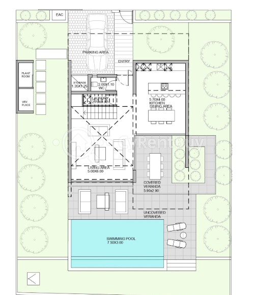 La casa dispone de una espaciosa cocina y una sala de estar independiente, ofreciendo un amplio espacio tanto para el entretenimiento como para la relajación. Además, una lavandería dedicada añade comodidad a las tareas diarias.