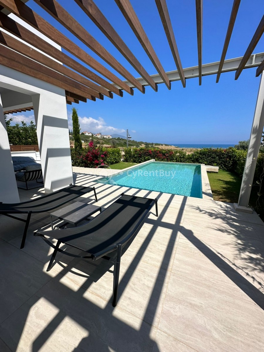 Los límites de la parcela están definidos por una combinación de muros bajos y altos, proporcionando privacidad y estilo. Después de la línea de protección de la playa, se han plantado arbustos que añaden un toque natural y verde.