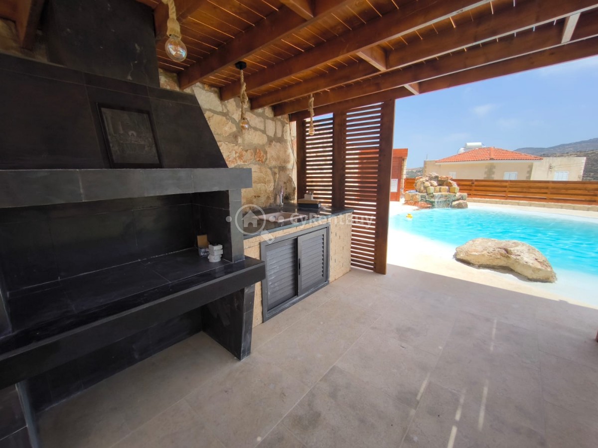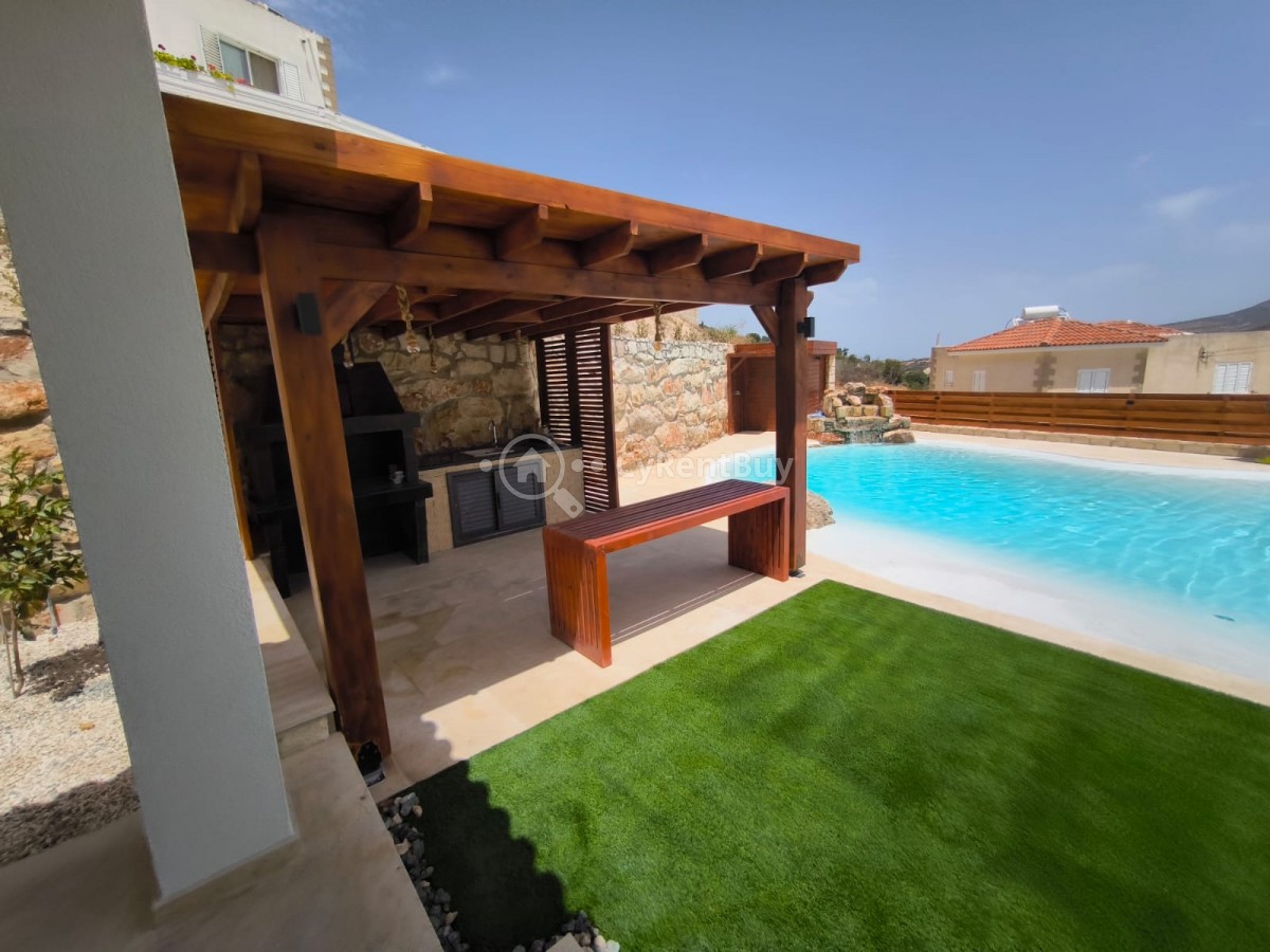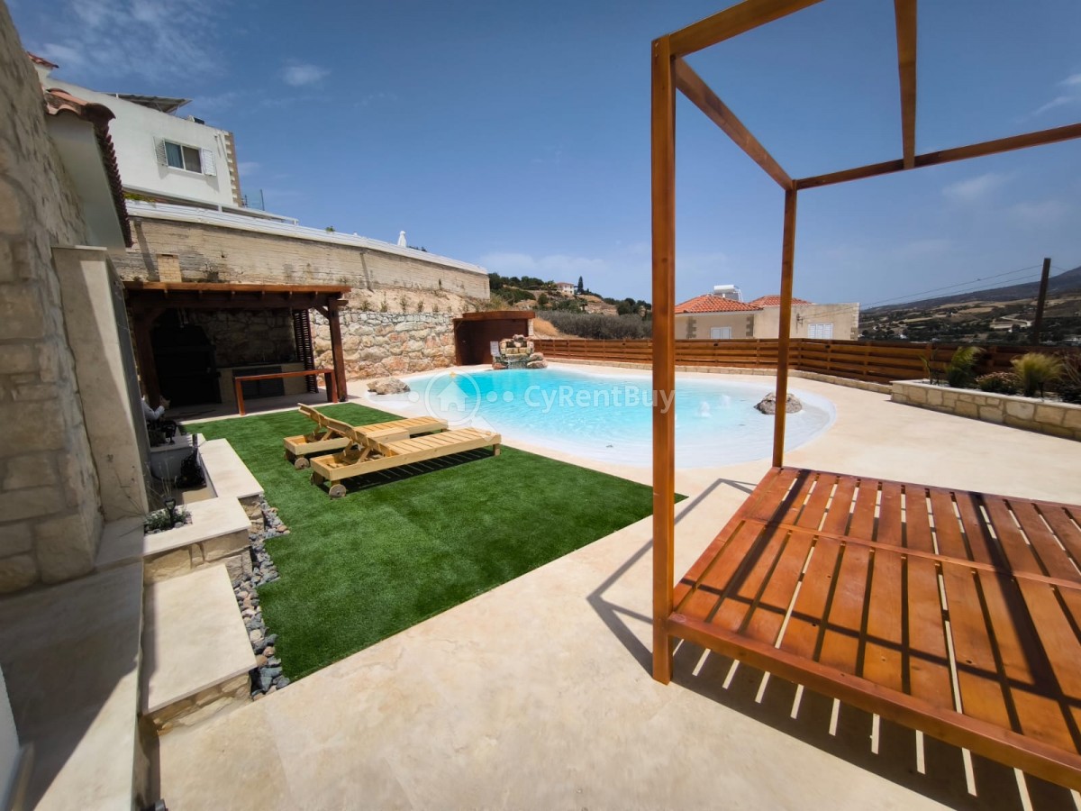 Esta exquisita propiedad ofrece impresionantes vistas a la montaña y está convenientemente ubicada cerca de todas las comodidades esenciales. La amplia zona exterior cuenta con un exuberante césped verde, una piscina de diseño único con una fuente en el suelo y una zona de barbacoa, perfecta para el entretenimiento y la relajación.