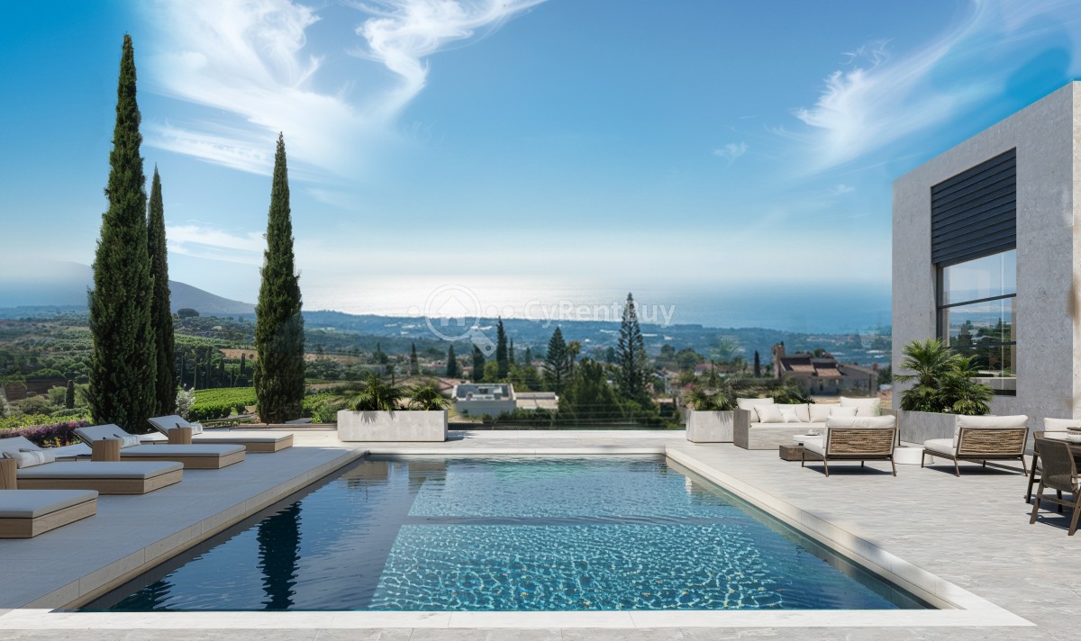 Nestled atop a serene hill in the prestigious village of Tala, Paphos, this exceptional 6-bedroom villa captures the essence of luxury living with uninterrupted Mediterranean views, spectacular sunsets, and an atmosphere of complete tranquility.